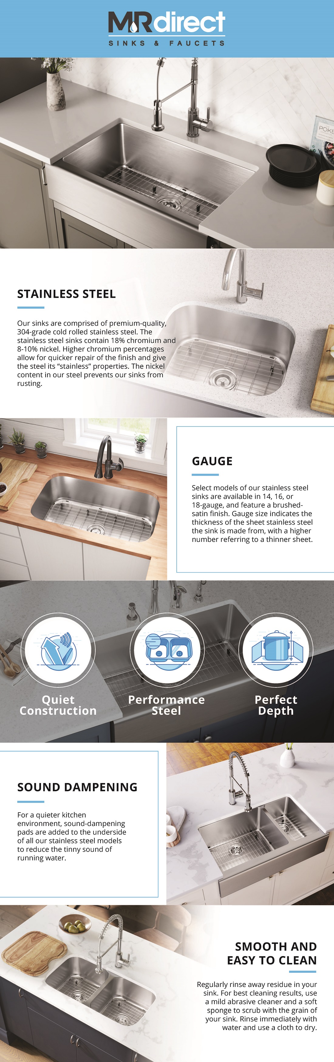 MR Direct International is located in Toledo, Ohio. We supply and distribute our own "MR Direct" brand sinks and faucets. Since we are direct there is no "middle man" to mark up prices. We are able to offer a superior quality product at an affordable price. This item MR Direct U1611-W White Undermount Porcelain Bathroom Sink 1181CBW 18-in x 11-in White Rectangular Porcelain Undermount Bathroom Sink Friho 18.5''x13.8''x7.9'' Modern Sleek Rectangular Undermount Vanity Sink Porcelain Ceramic Lavatory Bathroom Sink,White With Overflow Product Title MR Direct US1053L 18 Gauge Undermount Stainless Steel 31-3/4 in. Double Bowl Kitchen Sink Average Rating: (